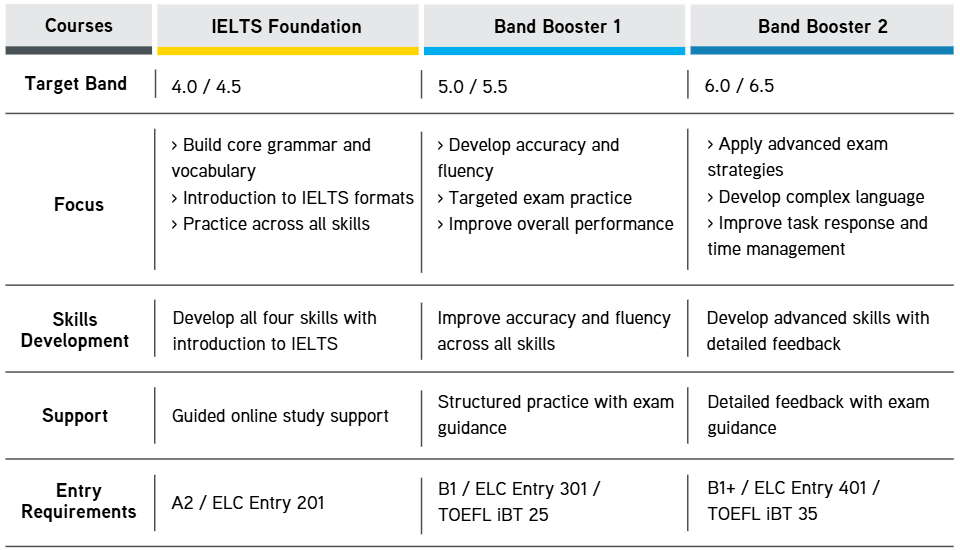 This course is for students with no knowledge of the IELTS test and a low-level of general English.